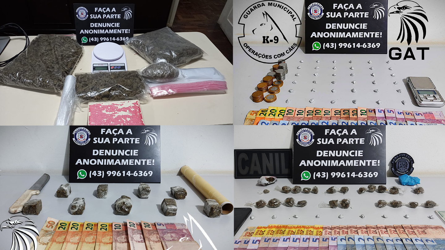 A Guarda Municipal de Arapongas apreendeu drogas e prendeu traficantes nesta segunda-feira (31) em quatro ocorrências distintas em menos de…