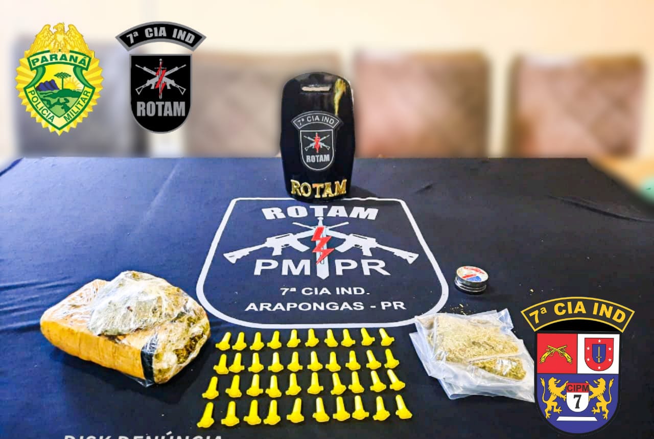 Trio é detido com tablete de maconha pela Rotam em Arapongas