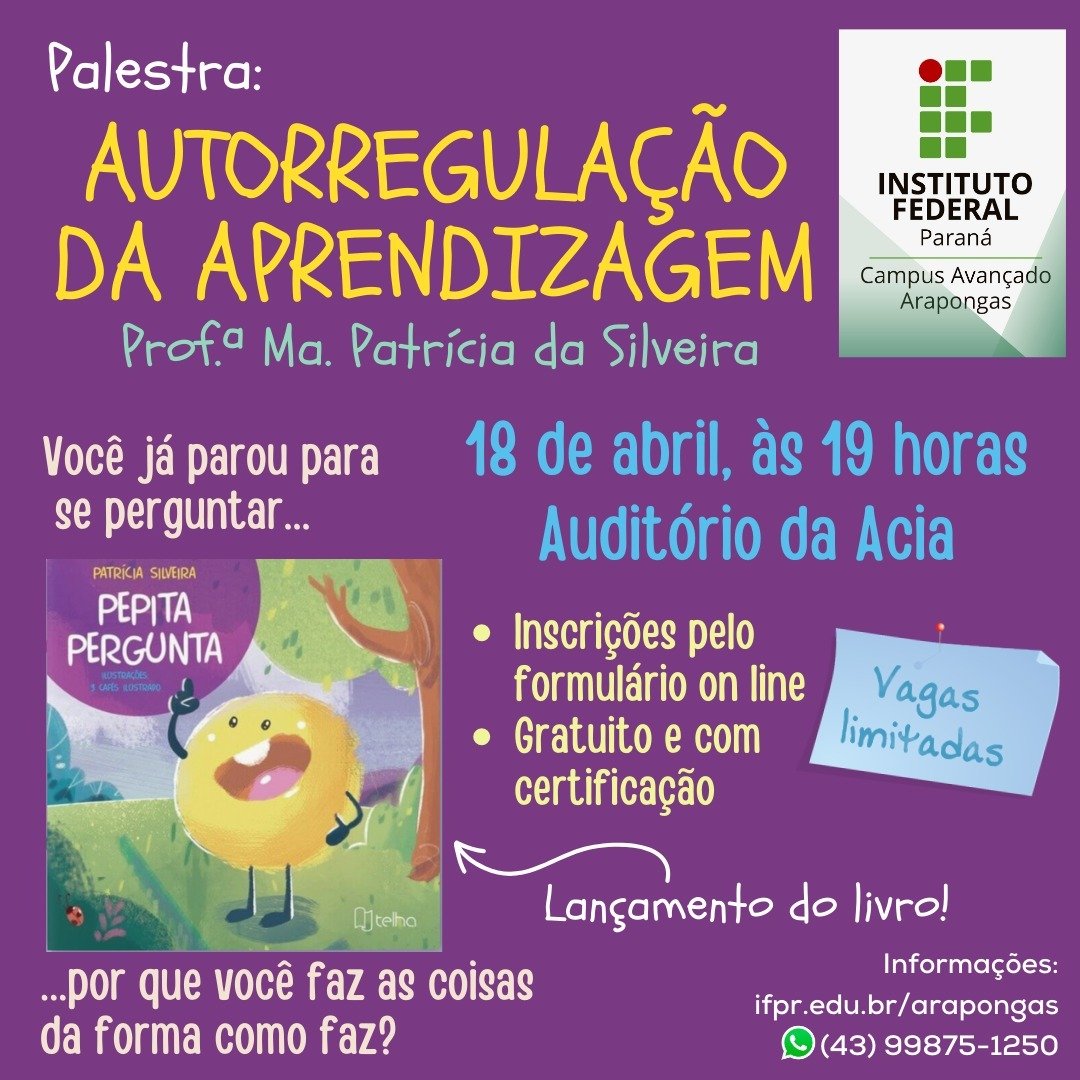 O Instituto Federal do Paraná (IFPR) campus Avançado Arapongas realiza no próximo dia 18 – terça-feira, no Auditório da ACIA, às…