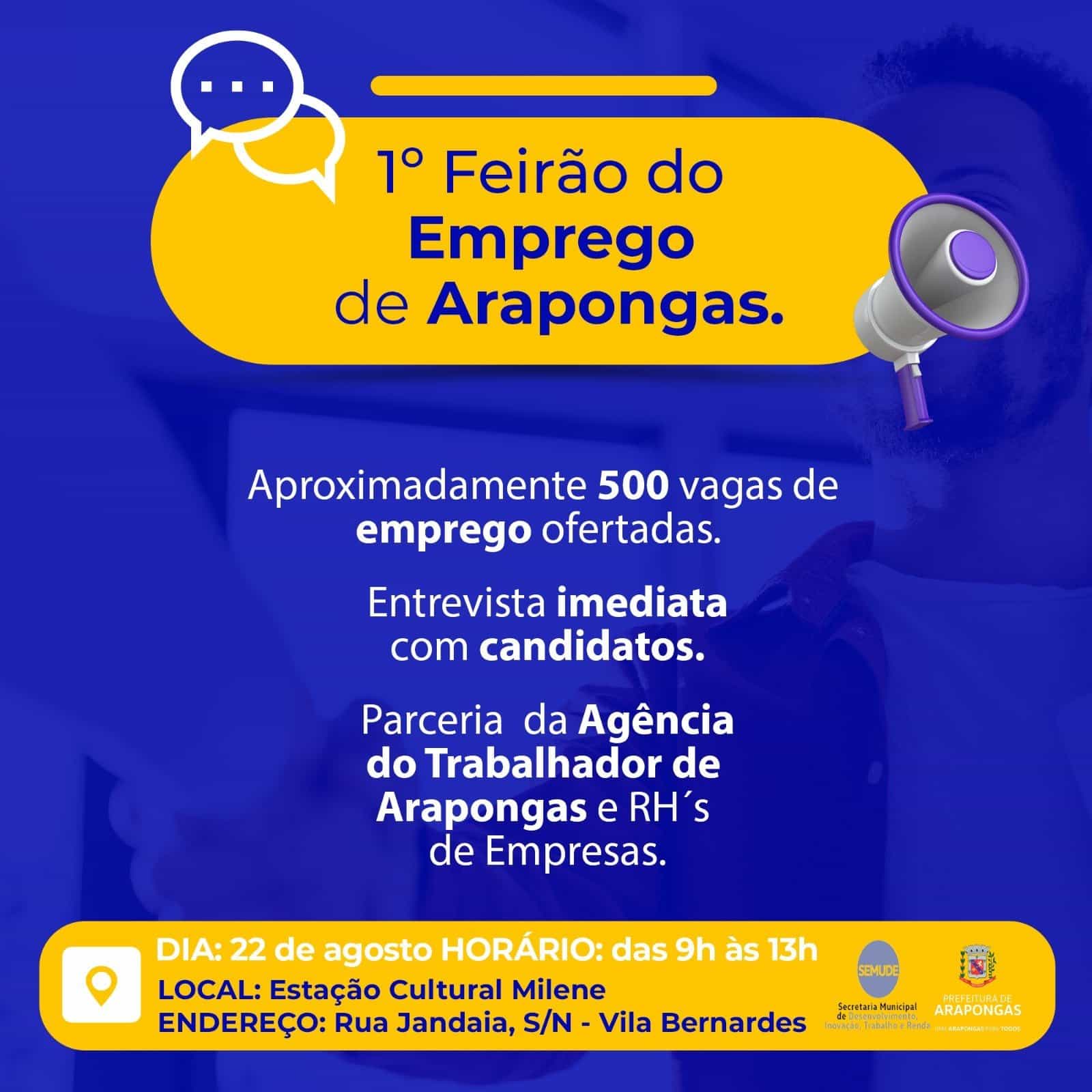 A Prefeitura de Arapongas, através da Secretaria Municipal de Desenvolvimento, Inovação, Trabalho e Renda (Semude), vai realizar no próximo dia…